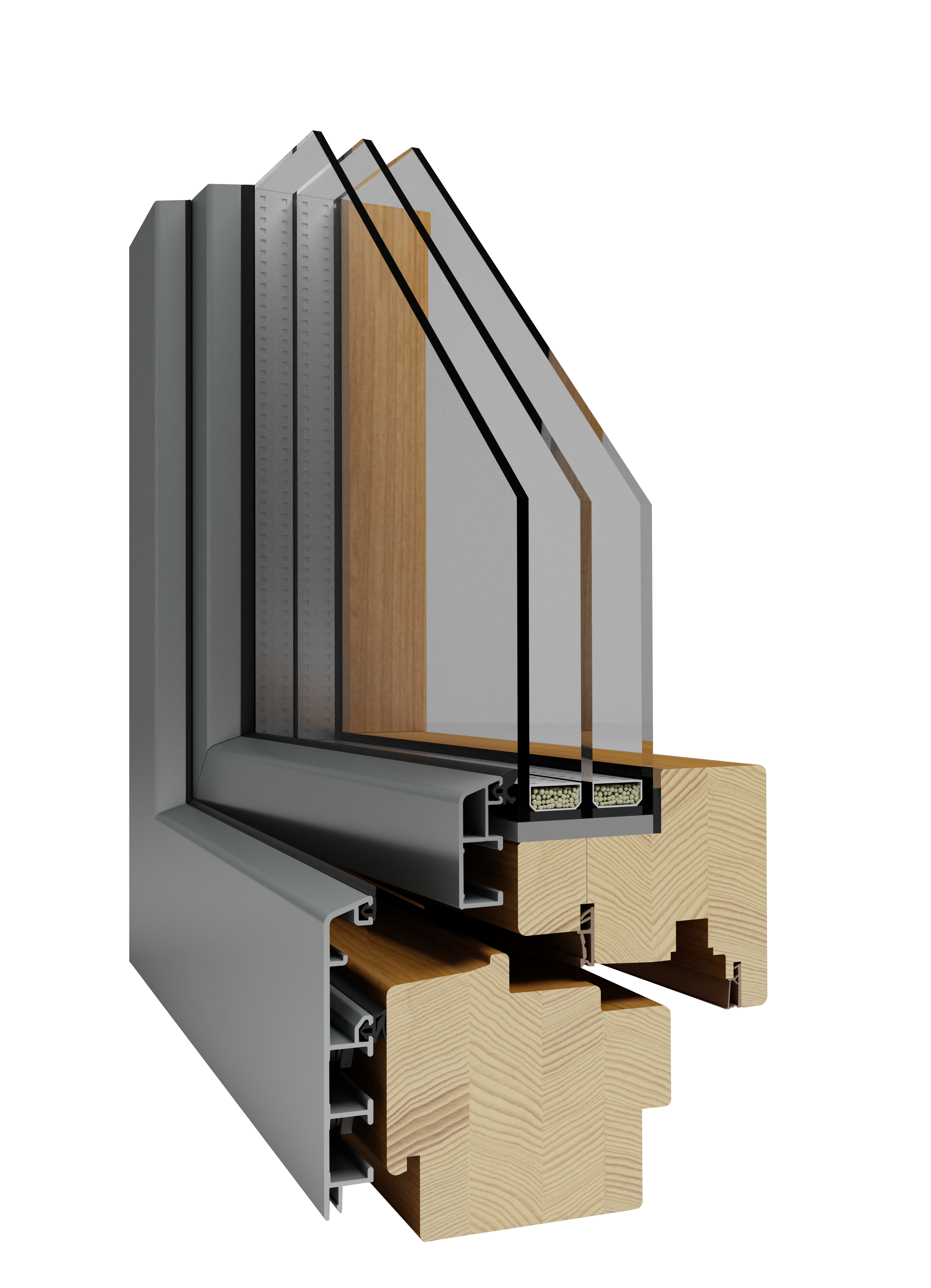 A combination of a 68, 78 or 92 mm thick profile made of wood of your choice and a solid aluminium cladding protecting it from the outside makes these windows’ life counted not in years, but in decades.